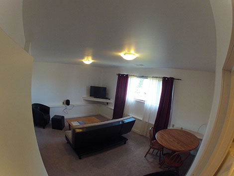 Enjoy the perfect retreat in our charming self contained suite that has two beds in the bedroom and a futon couch in the living room that folds into a bed, comfortably sleeping 3 adults or a family of 4.